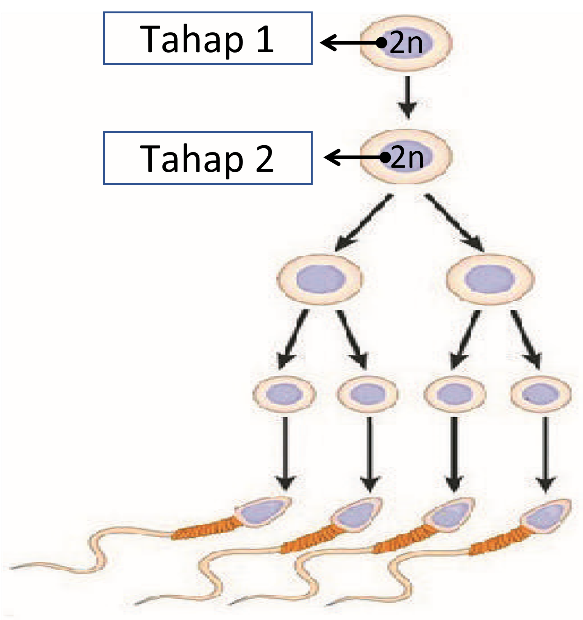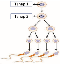 Peristiwa pembelahan sel dari tahap 1 ke tahap 2 pada pembentukan sel sperma adalah….